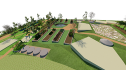 Também foram planejadas a locação das futuras construções, vias de acesso e trilhas, e espaços para instalações artísticas e atividades ao ar livre.